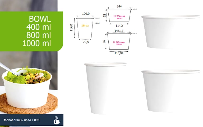 Tamanhos disponíveis: 400 ml / 800 ml / 1000 mlTIGELAS DE PAPEL para sorvete